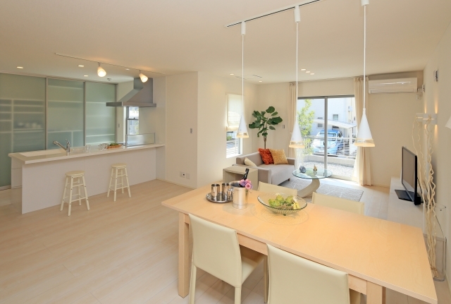 오픈 키친 등, 다이닝과 접속되어 있는 경우에는, 카운터 부분에 펜던트 조명을 설치하여 바 카운터풍으로 마무리하는 것도 가능하다.