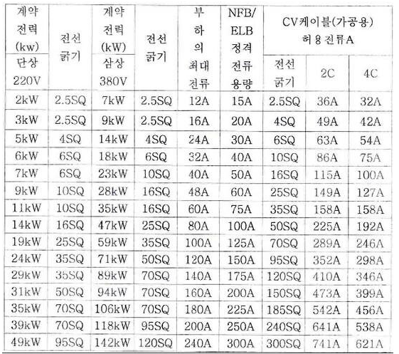 차단기 정격 전류 =(전동기 정격 전류의 합계×3)+ 다른 기기의 정격 전류의 합계